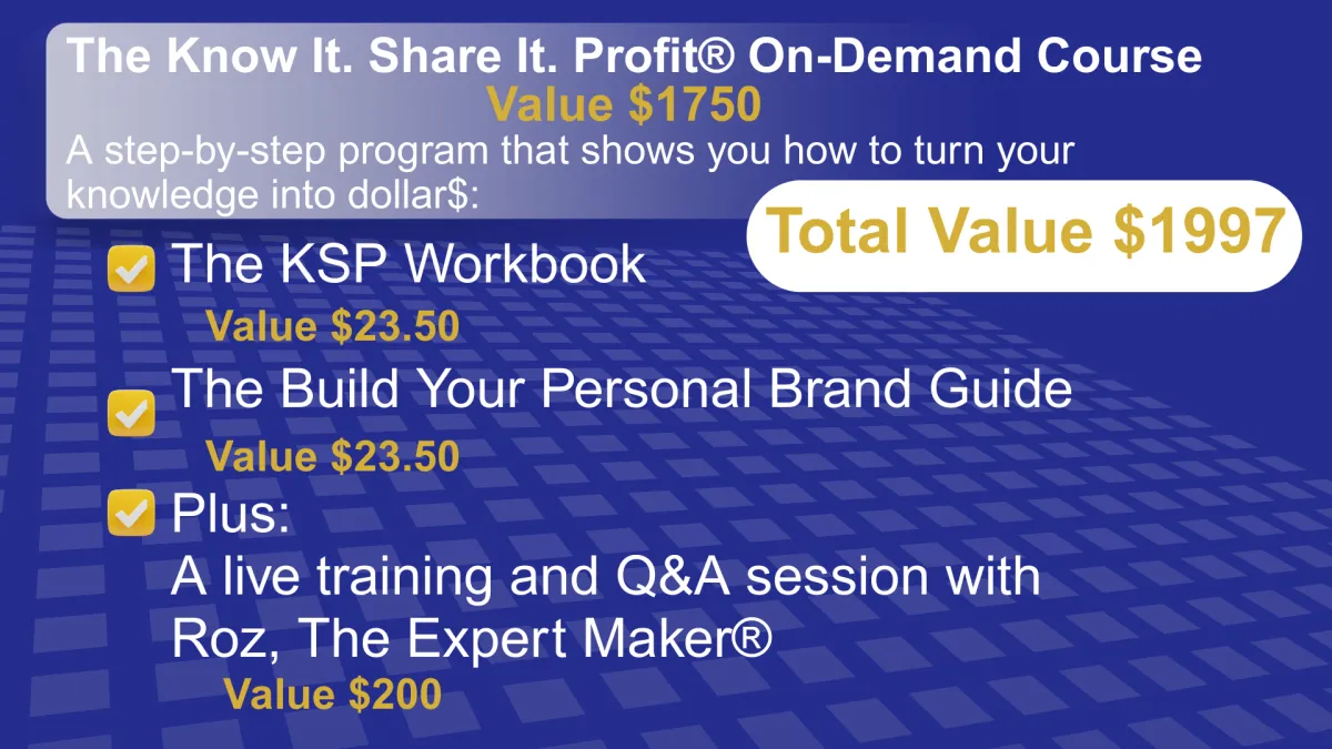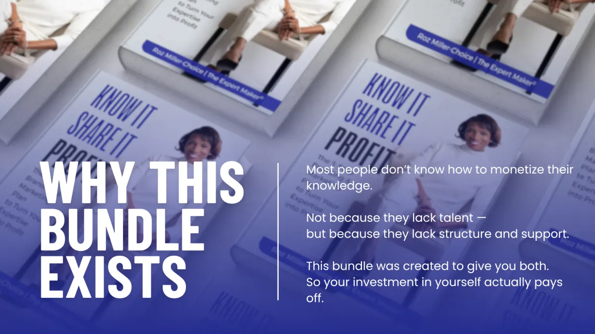 The Know it Share it Profit Bundle gives you direct access to the proven system behind Know It. Share It. Profit® — designed to help you turn what you know into visibility, clients, and income.